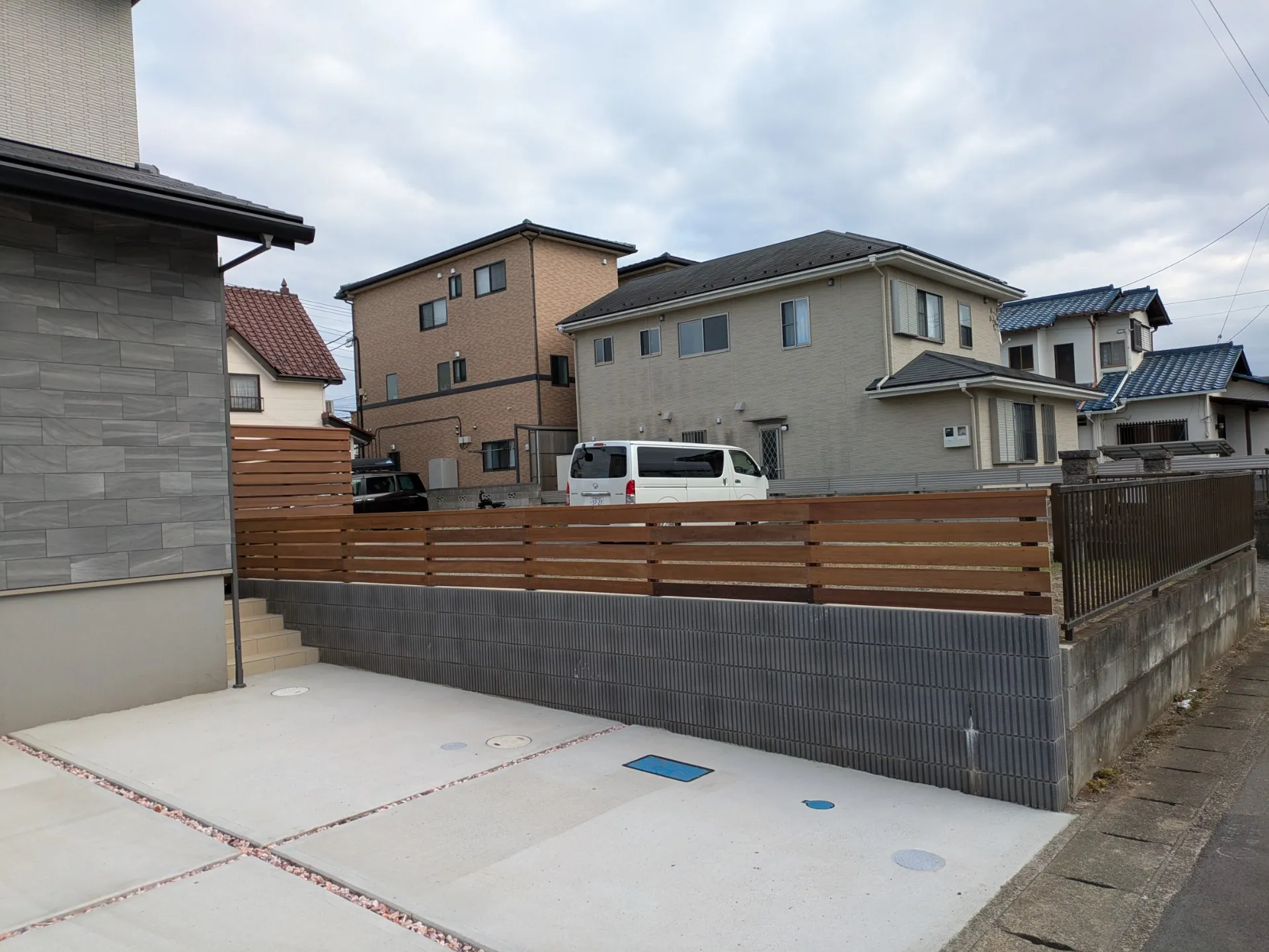 お庭の外が月極駐車場になっているので、プライバシー確保の為、ウッドフェンスで囲いました。